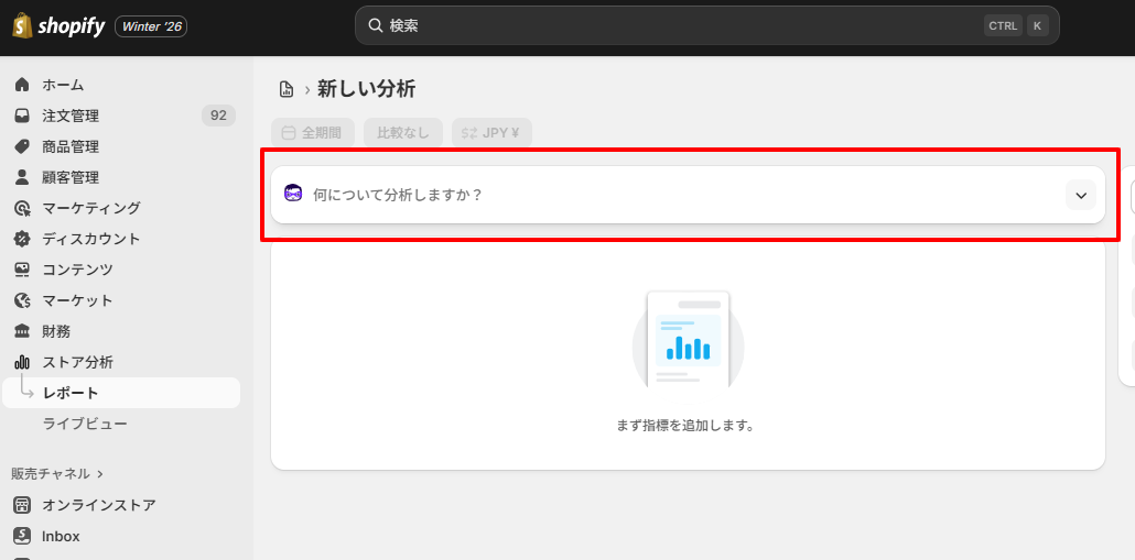 ストア分析機能から「新しい分析」を開くと、自分が知りたい指標のオリジナルレポートが作成できます。