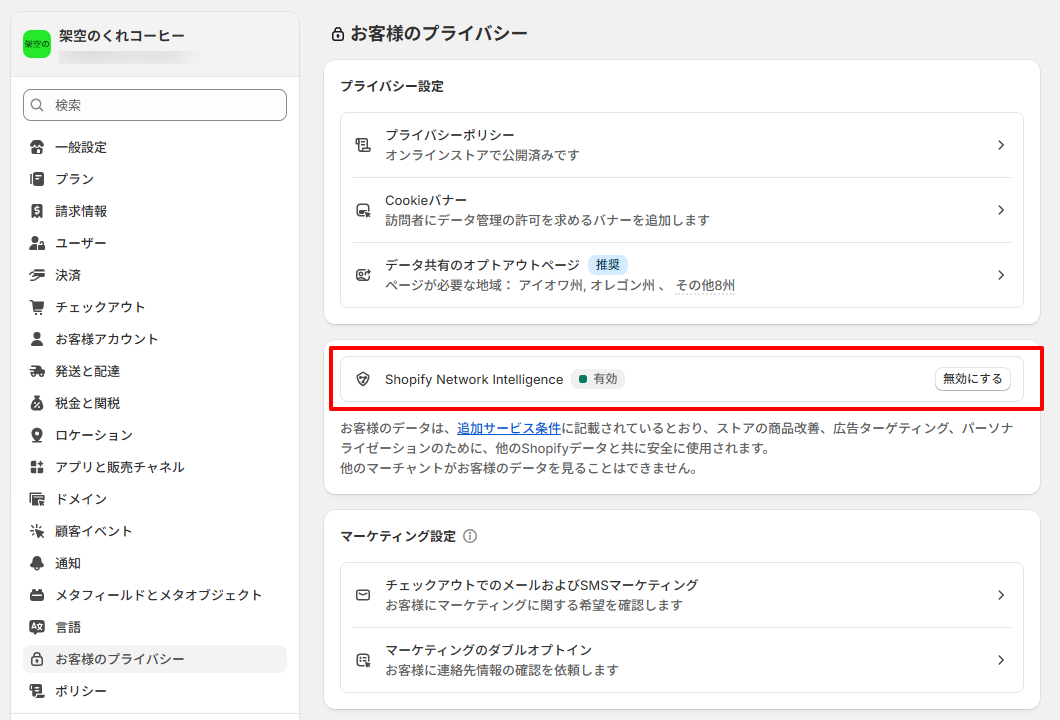 Sidekickとの会話の中で活用できるようですが、利用するには「Shopify Network Intelligence」を有効にする必要があります。