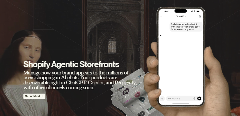 Shopifyで運営するストアがChatGPT、Perplexity、Microsoft CopilotなどのAIプラットフォーム上で瞬時に、正確に見つけられるようになるそうです。