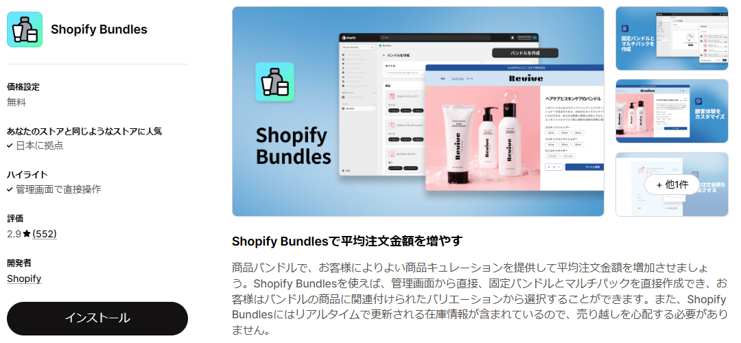 Shopify Bundles(バンドル)は個別に登録している商品のセット販売ができる機能です。